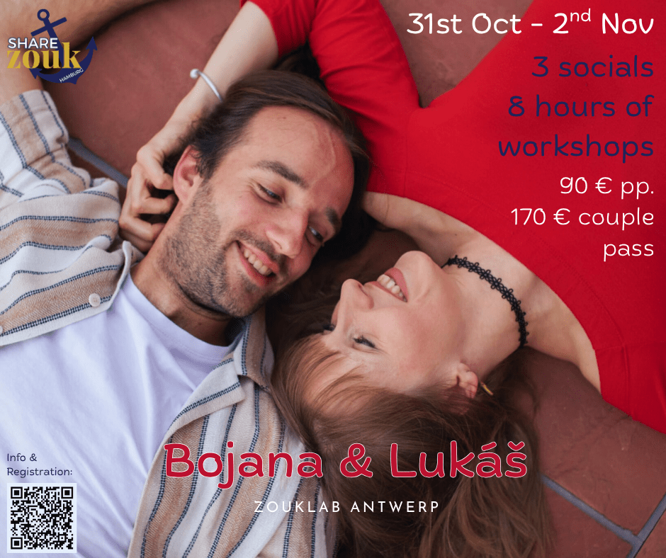 Another zouk event in our beautiful Hamburg! This time, Boyana and Lukas 🇧🇪 come to bring technique and playfulness to bring our dancing to the next level.